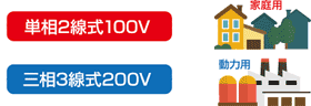 工場などで大型の電気製品を動かすのに使われるのが三相です。